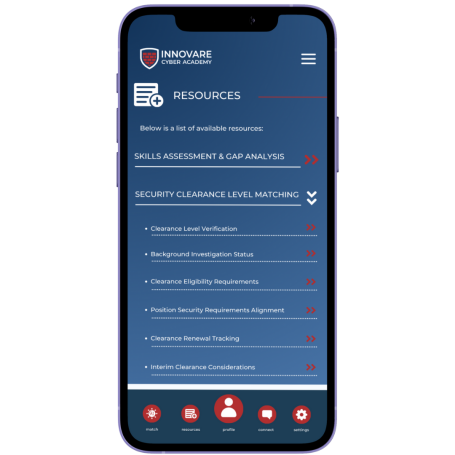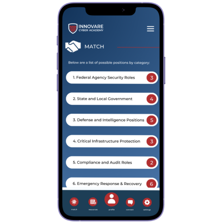 The Innovare app transforms how cybersecurity professionals find meaningful work in critical sectors by leveraging intelligent matching algorithms that assess skills, clearances, and sector-specific expertise.